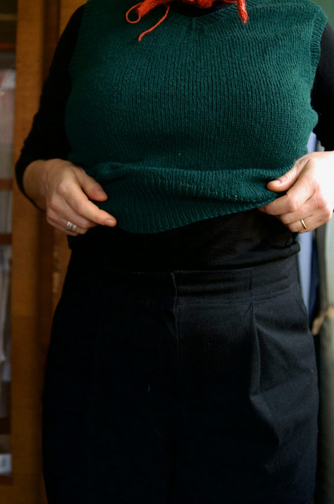 Viel Spaß mit diesen Fotos von einem Aran-Pullover, den ich vor zwei Jahrzehnten gestrickt habe, einer Weste, die ich letztes Jahr gestrickt habe, und, ach ja, dieser Hose, die ich gerade zu dokumentieren versuche.