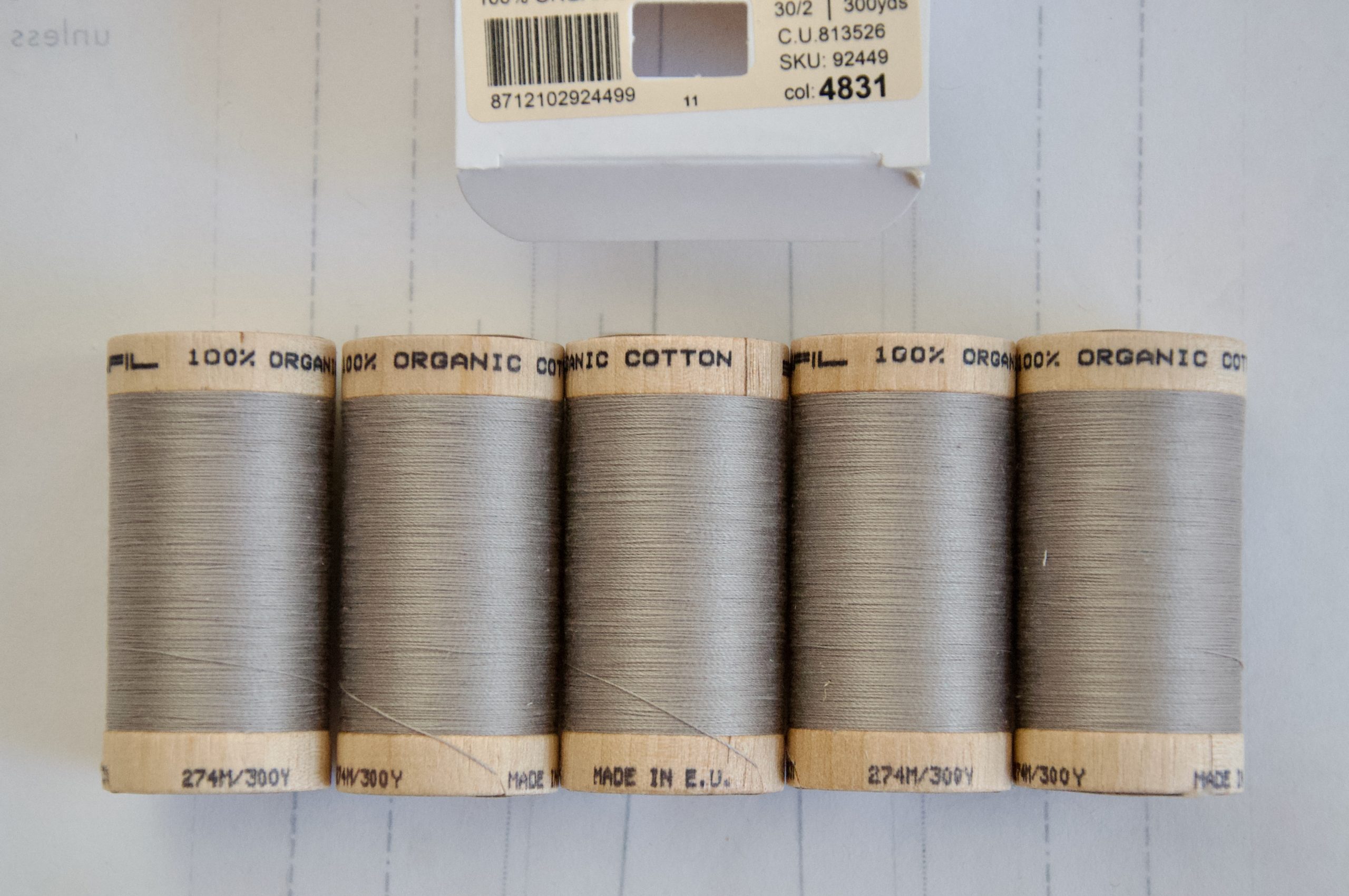 Organic long staple Pima Cotton thread 30/2 wt,  color number 4831 -Chateau Gray.  Perfect for machine or hand sewing. 300 yards (274 meters) per spool