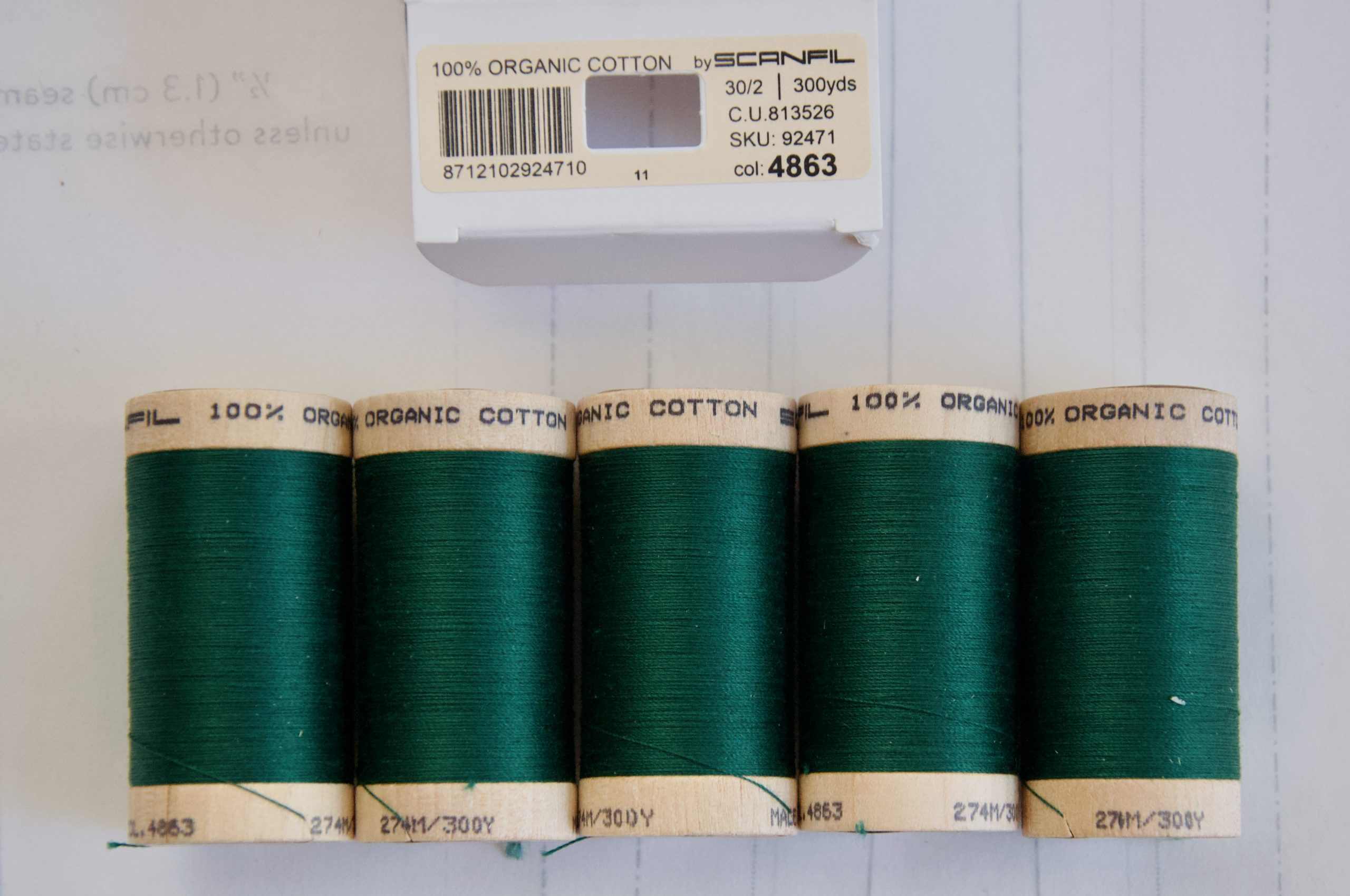 Scanfil organic cotton thread is my absolute favorite thread for sewing cotton and linen fabrics. Spun from extra long staple organic Pima cotton, the thread is smooth and strong with a pleasing hand and depth of color; wonderful for both hand and machine sewing, . The 30/2 weight is recommended by Scanfil as their „universal“ weight, perfect for tote bags, or garments like trousers and jackets that require a stronger thread. As an added bonus, the thread is wound onto beautiful wooden spools. 300 yards (274 Meter) per spool