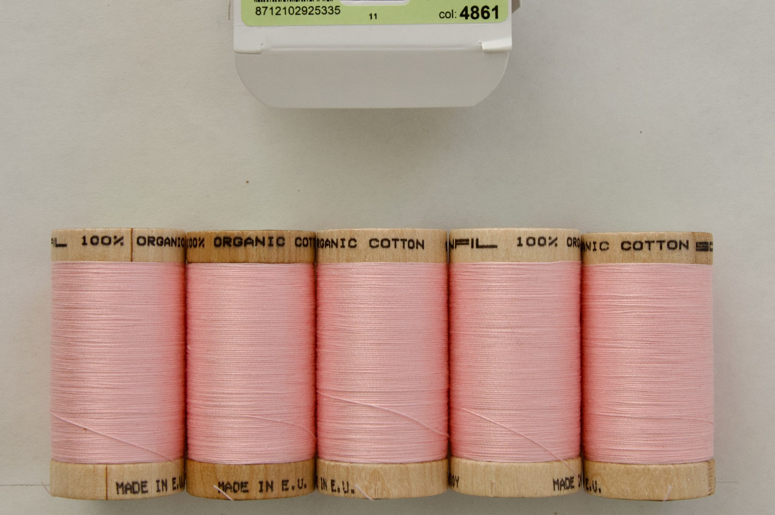 Scanfil Organic long staple Pima Cotton thread 50/2 wt, color 4861 – Crystal Rose. Perfect for machine or hand sewing. 500 yards (457 Meter) per spool