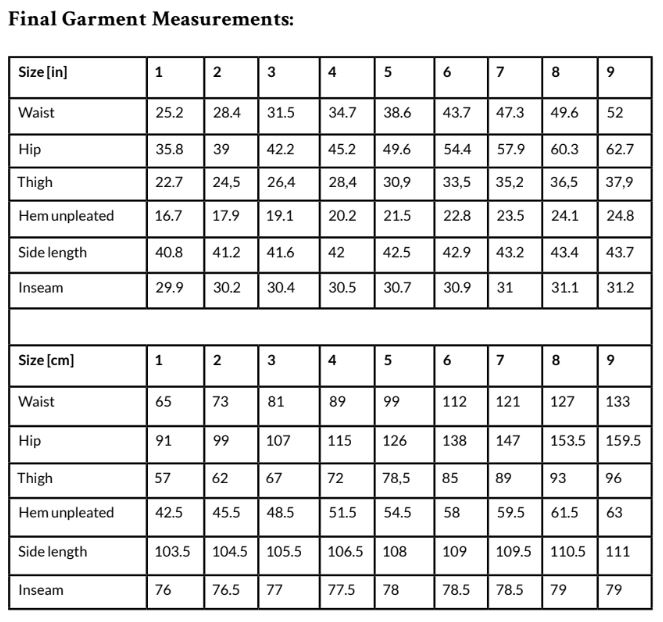 The FAIRWAY trousers feature a clean, mid-rise design with a double-button closure and side pockets, offering both functionality and style. The pattern includes two distinct leg variations: a straight-leg version for a timeless, streamlined look, and a pleated hem variation that adds a subtle, structured flair. The pattern is designed to be versatile and adaptable, allowing for a range of modifications to suit individual preferences. You can adjust the length for a cropped or full-length silhouette, modify the leg width for a more tapered or relaxed fit, or add elements like belt loops or back pockets. Depending on your choice of fabric, this pattern can easily transition between casual, professional, or more dressed-up occasions, making it a reliable wardrobe staple.