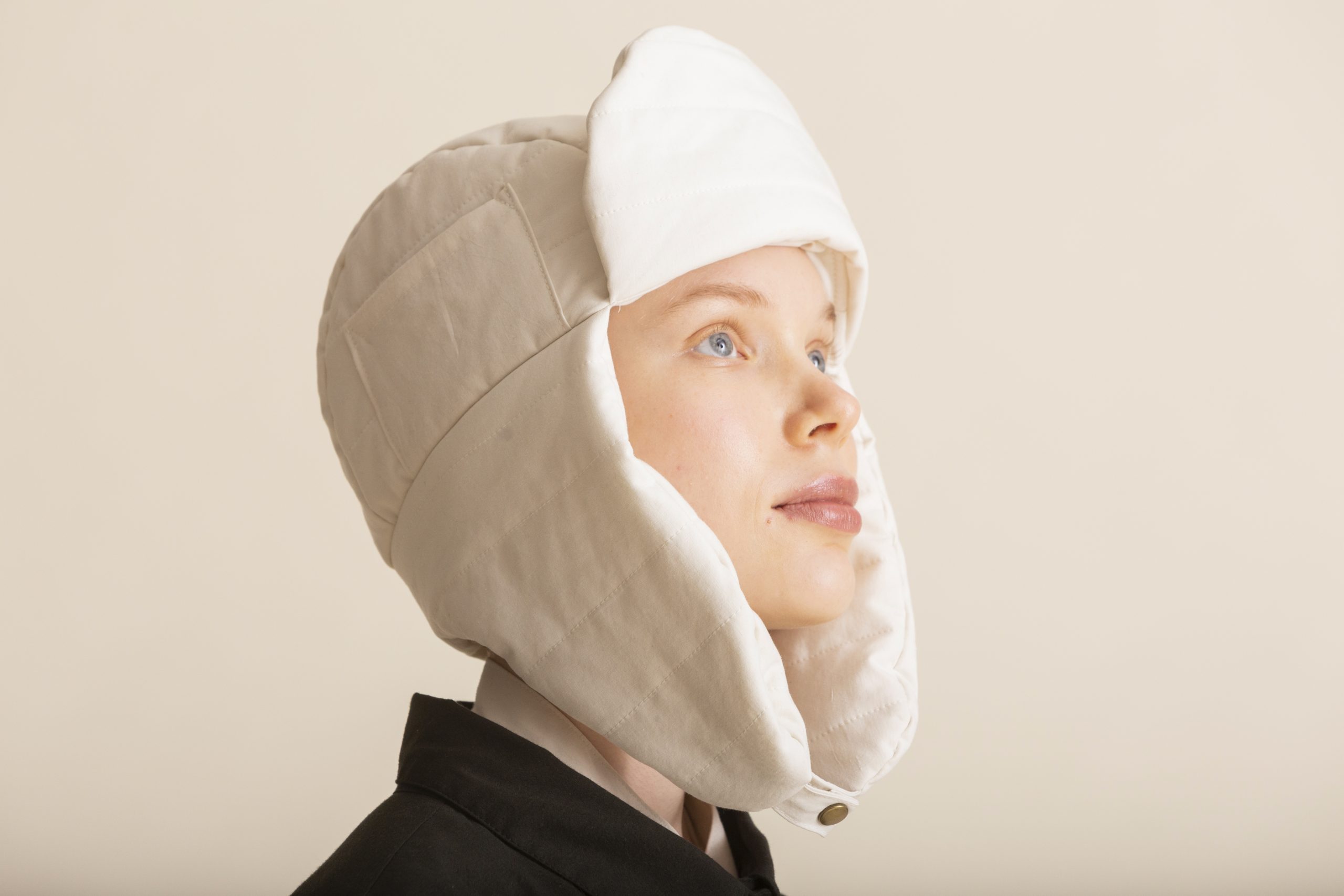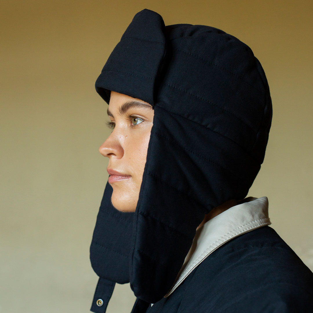 The GREET hat by Mila Moisio is a warm trapper hat with a hem piece that protects your ears. Doubled batting on the visor and hem add to the puffy feeling of the hat, which you can alter by varying the thickness of the batting. Experimenting with different quilt battings will allow you to create multiple looks with the same design!