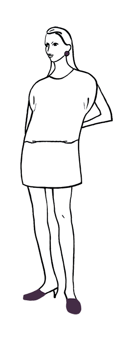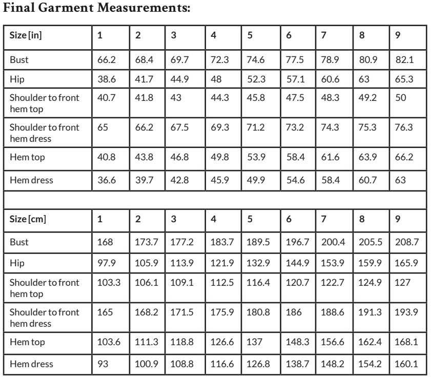 For the dress version, choose medium-weight knit fabrics or jerseys. For the top version, light and medium-weight fabrics with drape like viscose, Tencel, or linen blends work well. The dress sample is made in “Organic  Basic Brushed Sweat” (100% cotton, 9.14 oz/310 gsm) and the top sample is made in “Urban Leo” (100% LENZING ECOVERO viscose, 4.87 oz/165 gsm). Both fabrics by METERMETER.