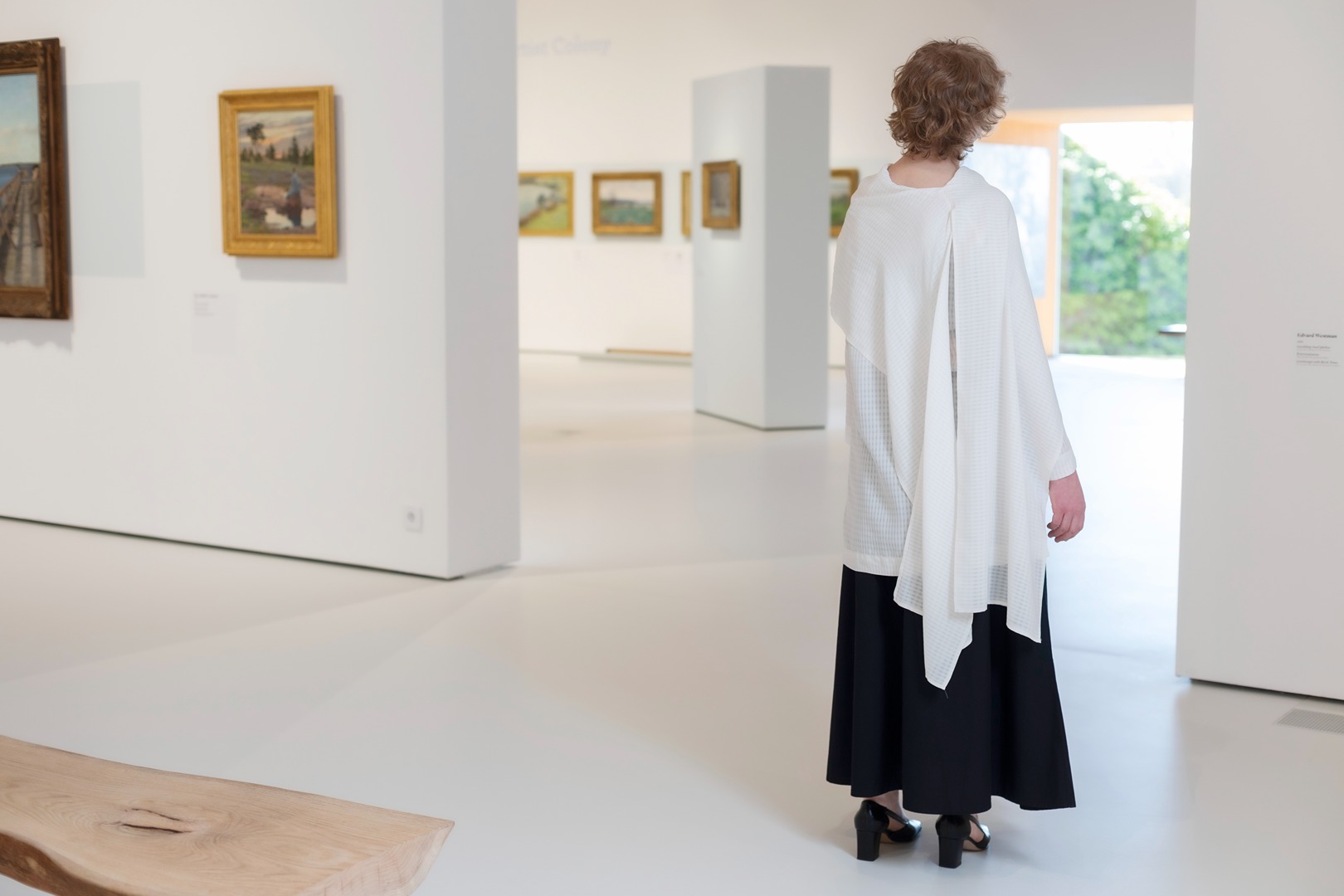 Dieses vielseitige Kleidungsstück lädt zum Spielen, zum Kombinieren und zum individuellen Styling ein. Es bewegt sich mit dir und verändert seine Form, je nachdem, wie man den Schal drapiert.